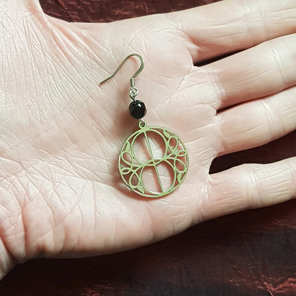 ⛥ Ces délicates boucles d’oreilles d’inspiration celtique sortent des sentiers battus! Rondes, elles offrent de délicats entrelacs qui entourent deux cercles infinis, reliés entre eux. Elles seront parfaite pour apporter une touche celtique moderne à votre look grâce à la perle à facettes noire!