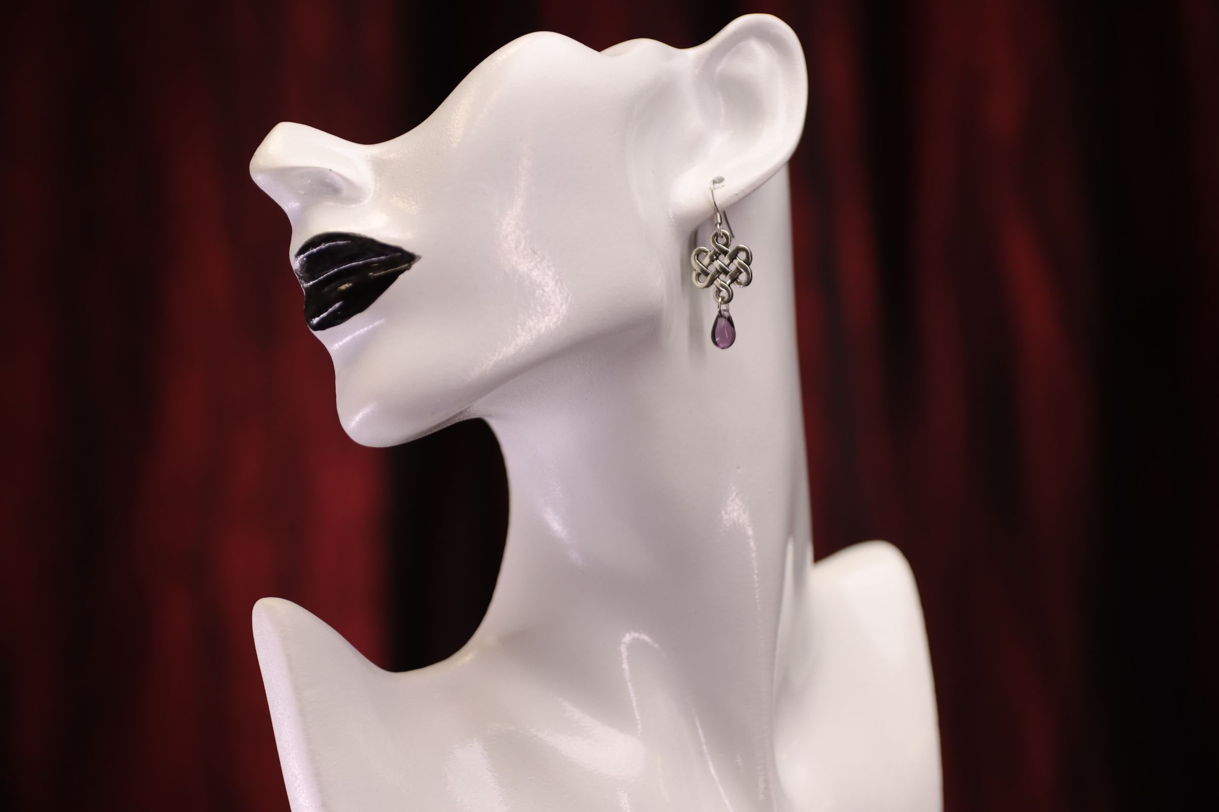 Condition de retour pour « Boucles d’oreilles noeud d’amour celte, avec perle en verre noire ou violette » :