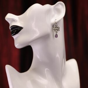 Boucles d’oreilles noeud d’amour celte, avec perle en verre noire ou violette